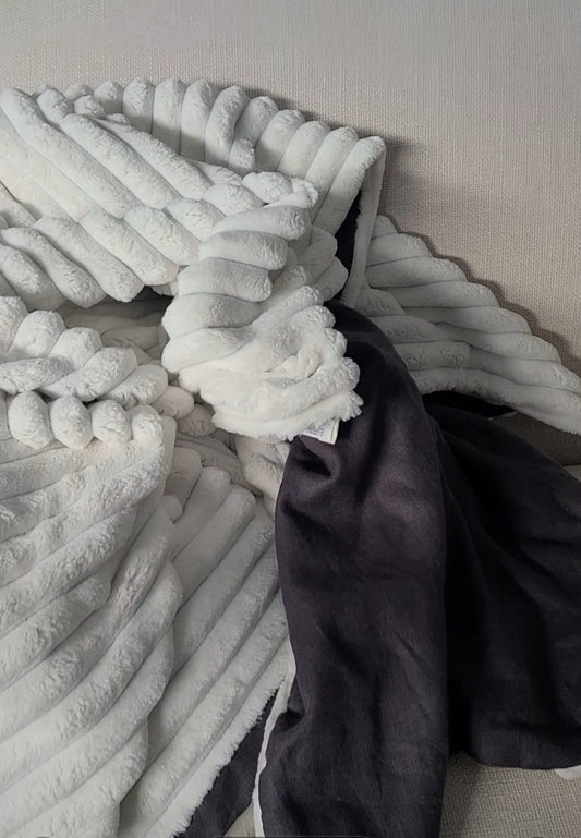 Charcoal Grey Linen with Cream Corded Chenille Throw