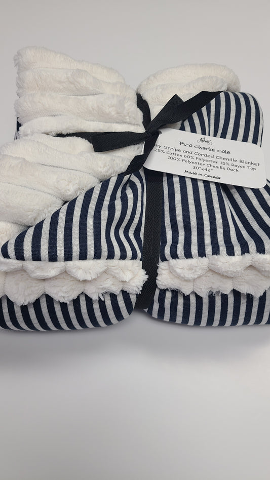 Navy Stripe with Corded Back Baby Blanket