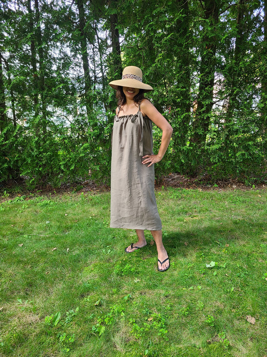 The LILY Linen Dress in Olive