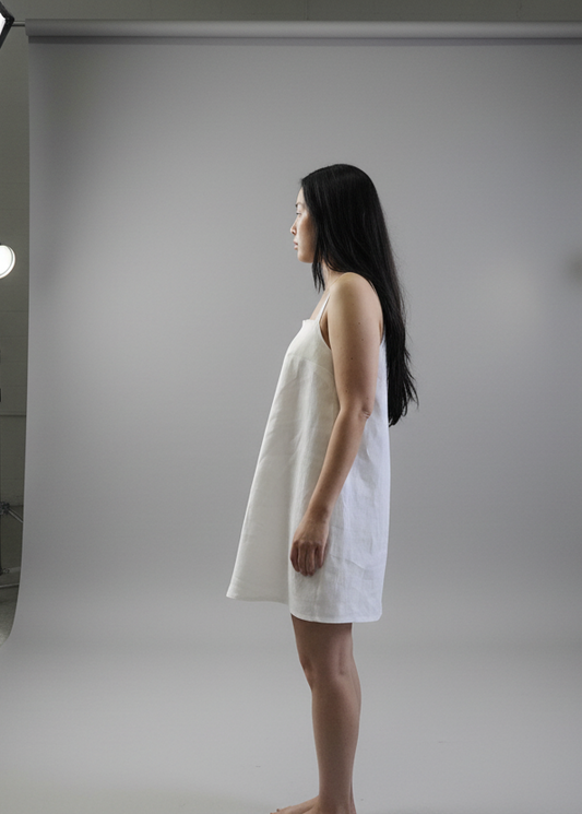 Ava Linen A-Line Dress White