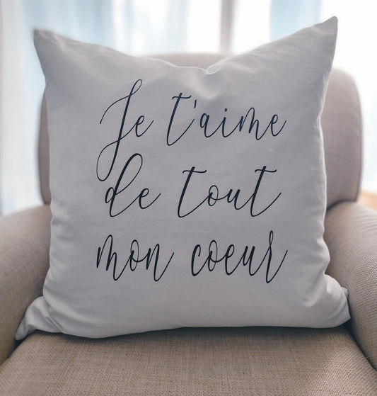 Je t'aime de tout mon coeur Denim Cotton Pillow