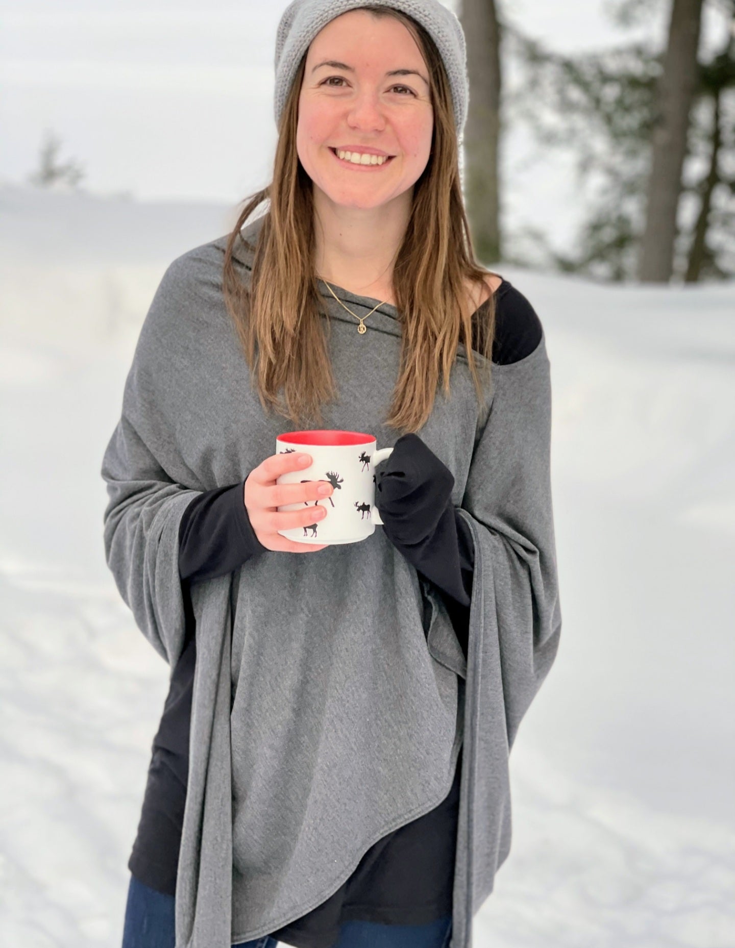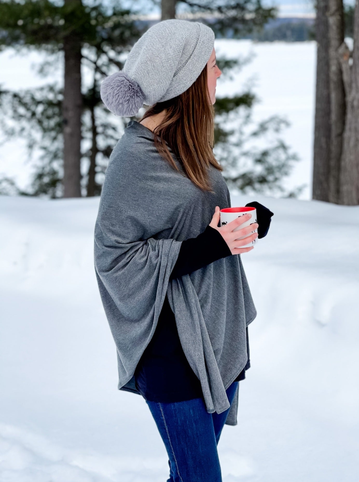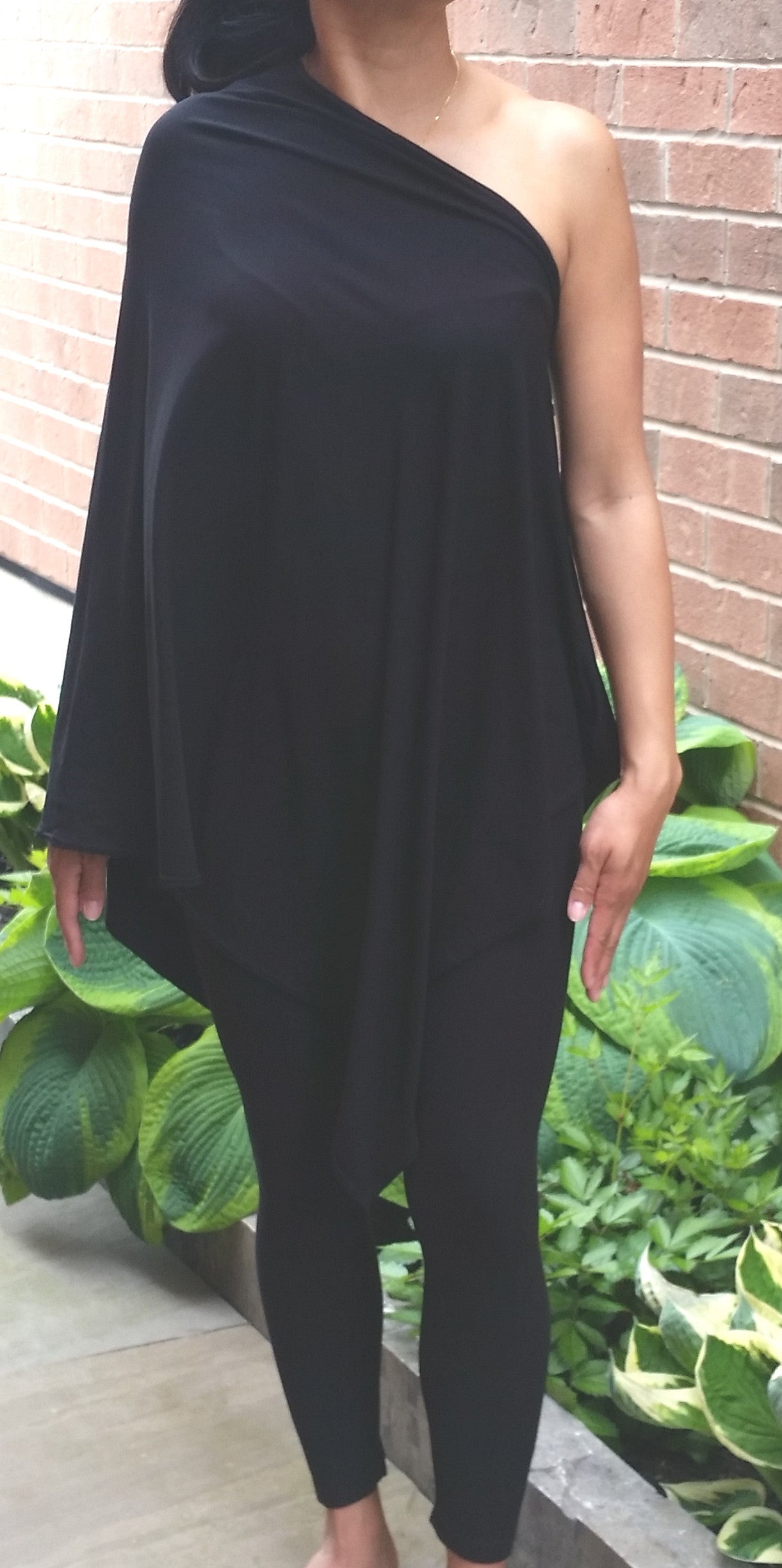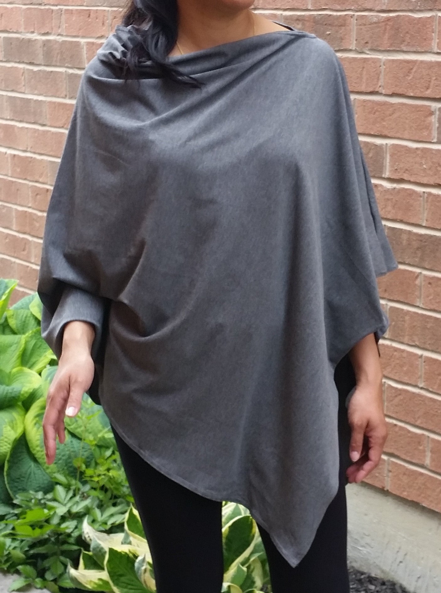 Our Bamboo Poncho is soft and comfortable. It has a wonderful drape and will flatter all shapes and sizes. For an alternative/versatile look, slip one hand through the neck and create a one shoulder look.