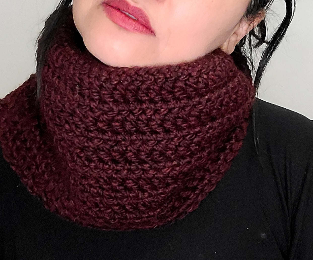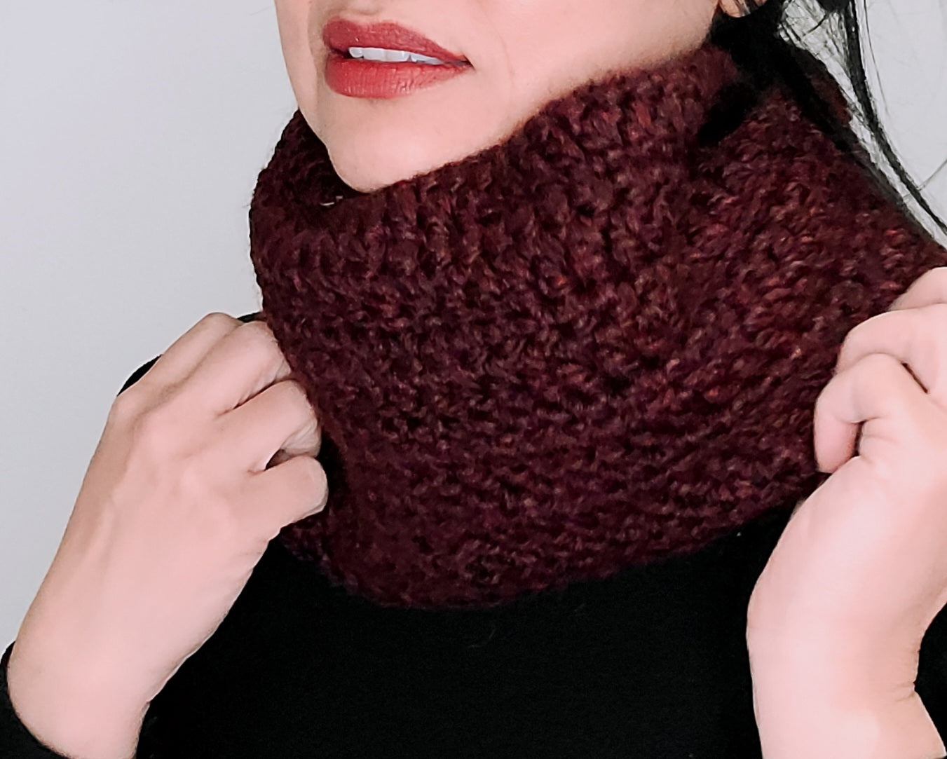 Chunky crochet neck warmer. Slip it over your head to keep the chills away.