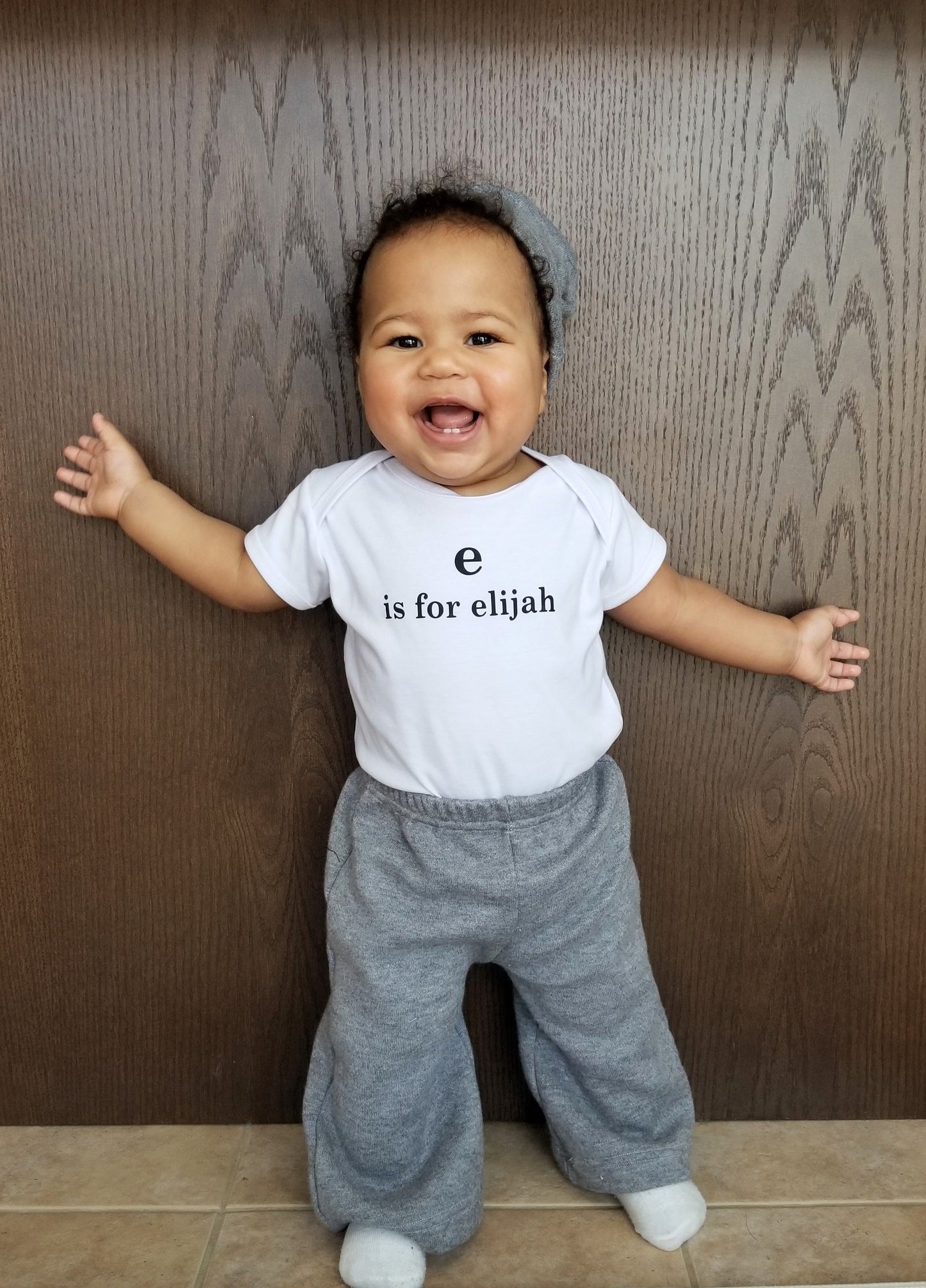A letter of the alphabet followed by the name of baby. This is a great gift.