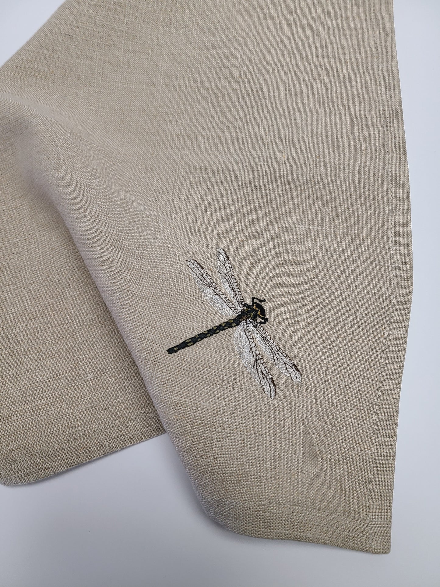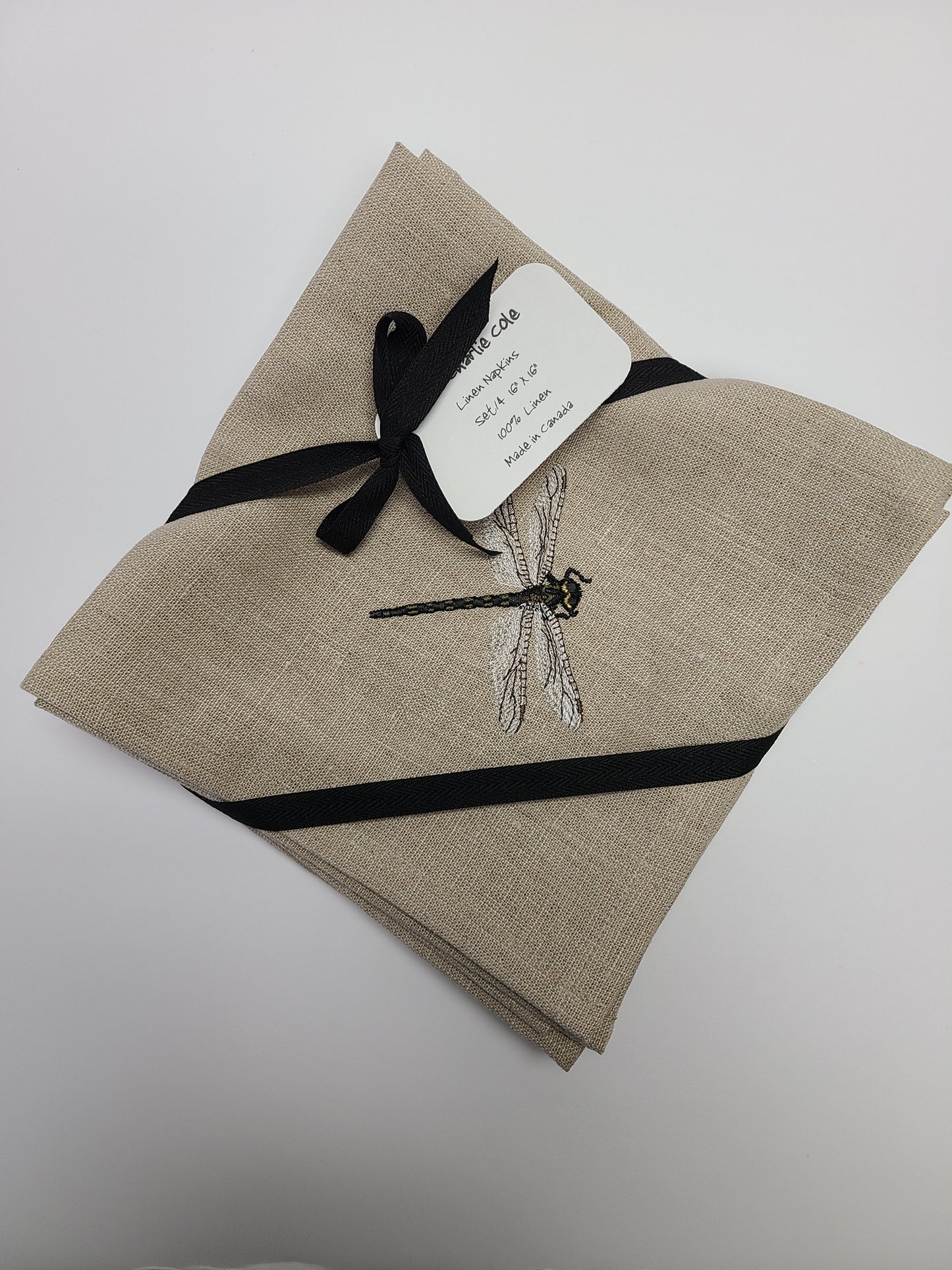 Elevate your dining experience with our Dragonfly Linen Napkin Set! Made of premium natural linen, these embroidered napkins add a touch of whimsy to any table setting. Perfect for dinner parties and entertaining. Set includes 4 napkins.