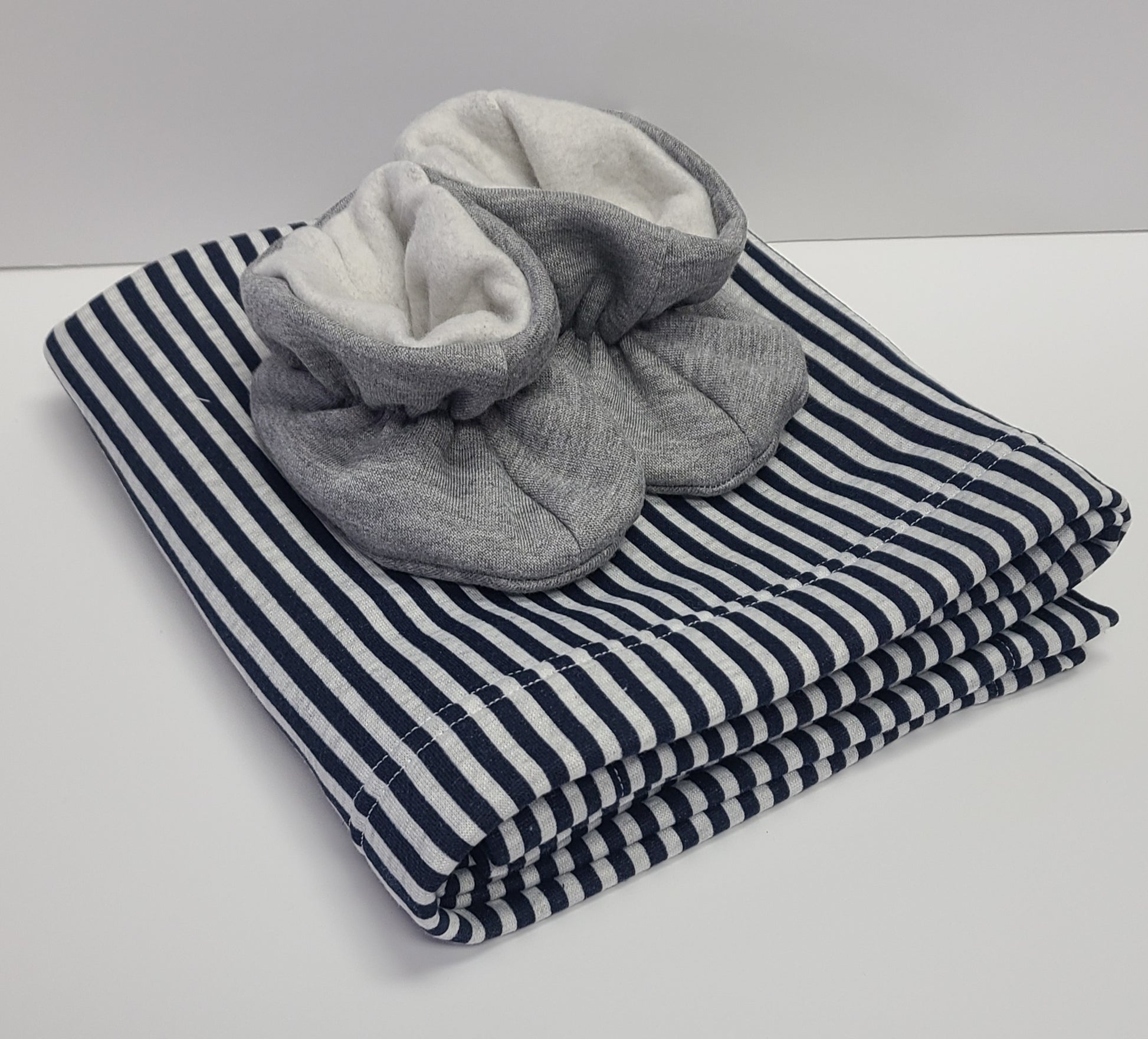 Booties + Blanket Set : Grey, Navy Stripe