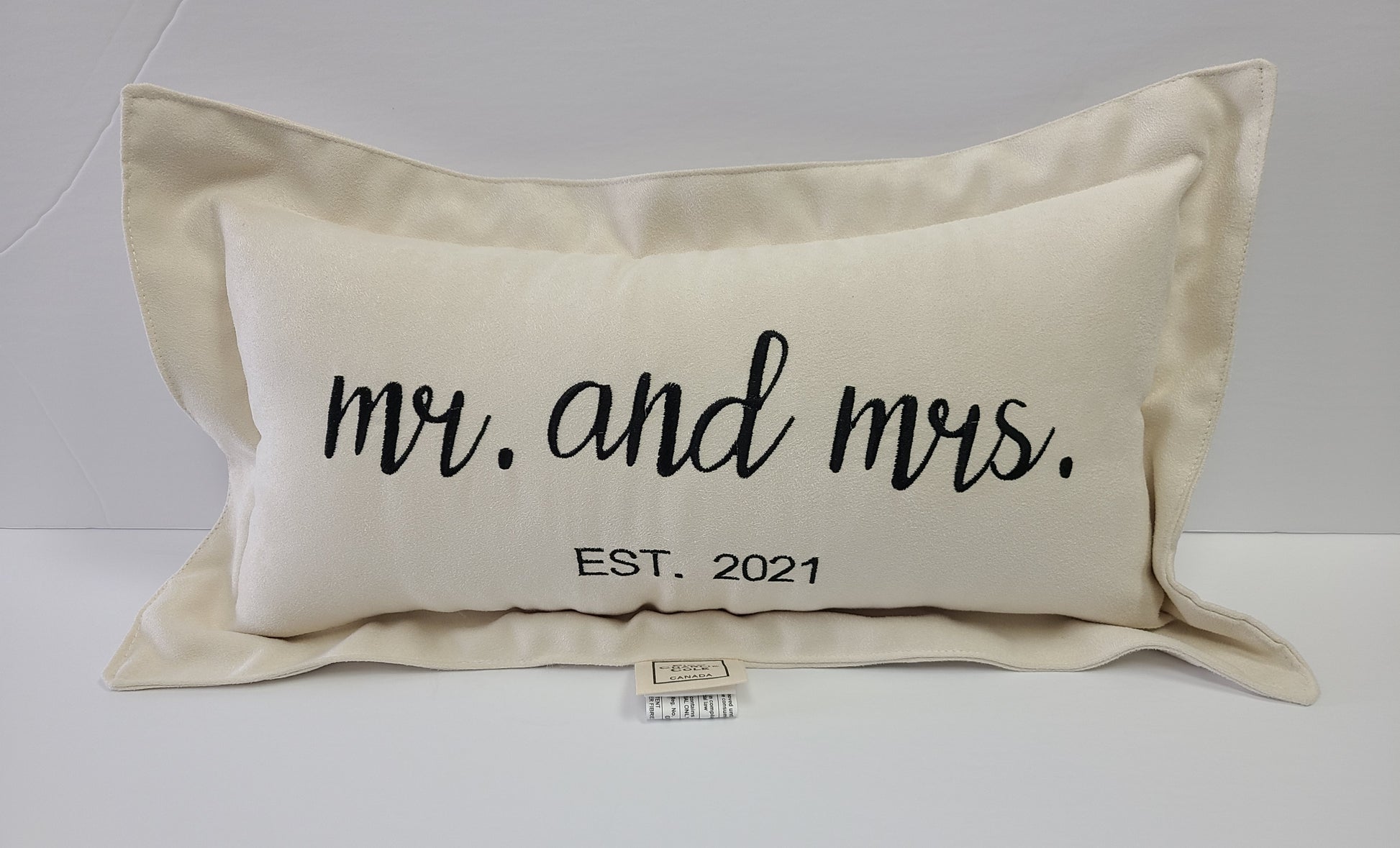 Celebrate their love with our Mr. and Mrs. Est. 2024 Pillow! This cute announcement pillow makes a perfect wedding gift or anniversary present. Made with ultra suede fabric, it's soft to the touch. Happy couple not included.
