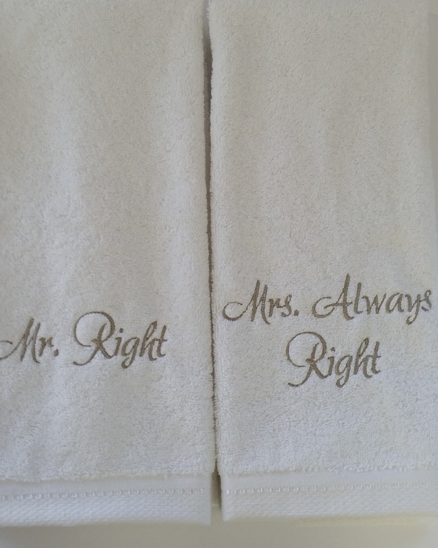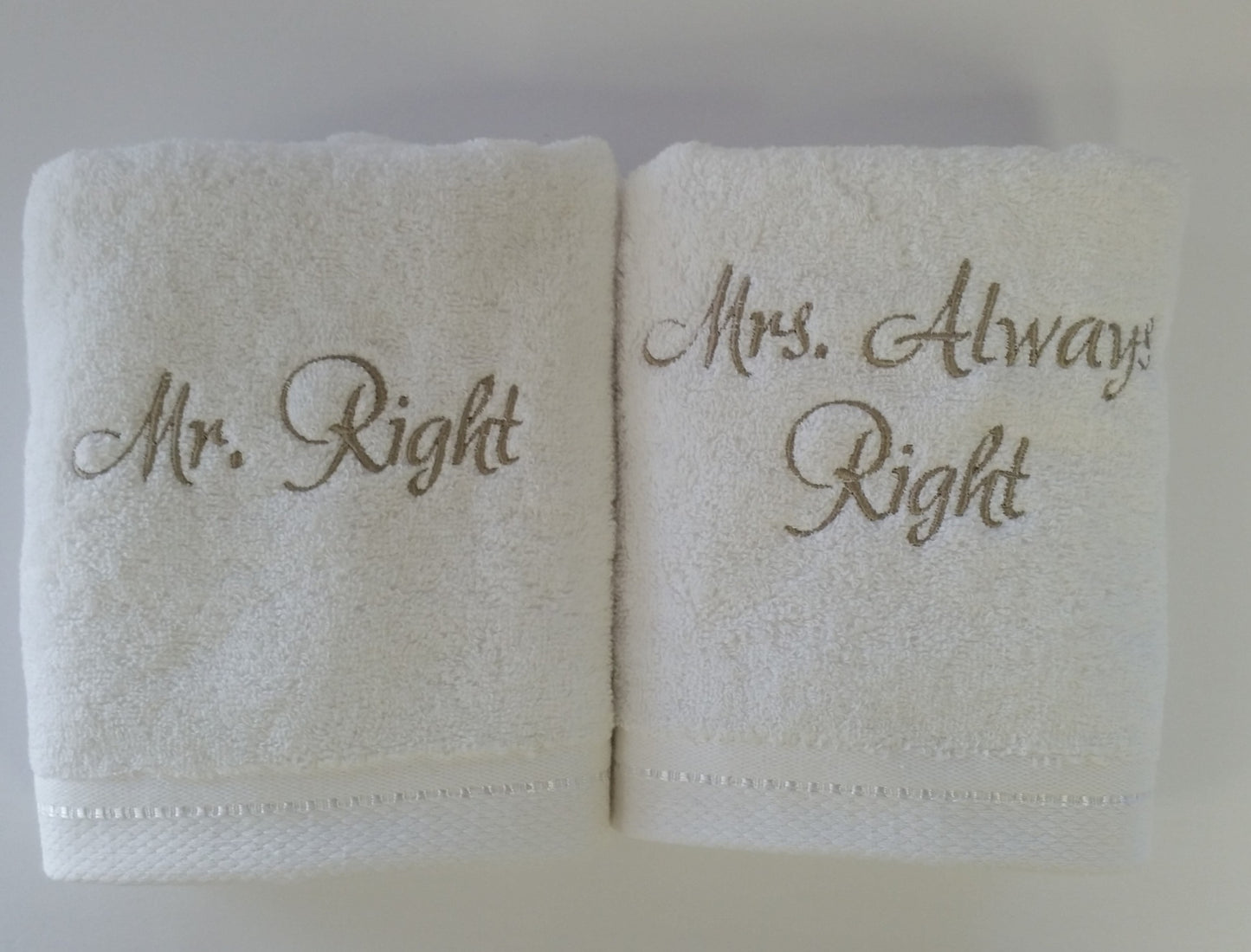 Mr. Right/ Mrs. Always Right Hand Towel Set