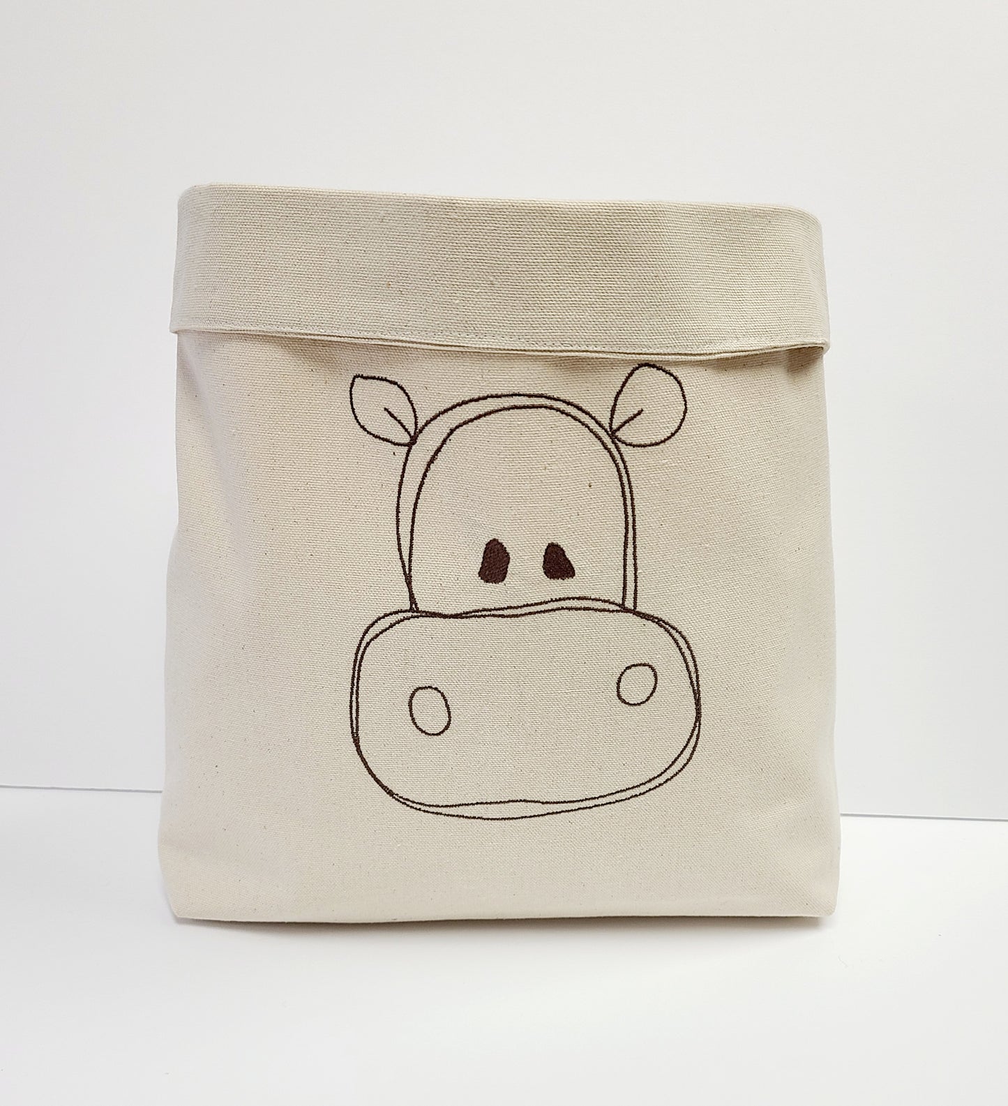 Our signature hippo face, Pico Hippo (Phippo), is embroiderd in chocolate brown thread.