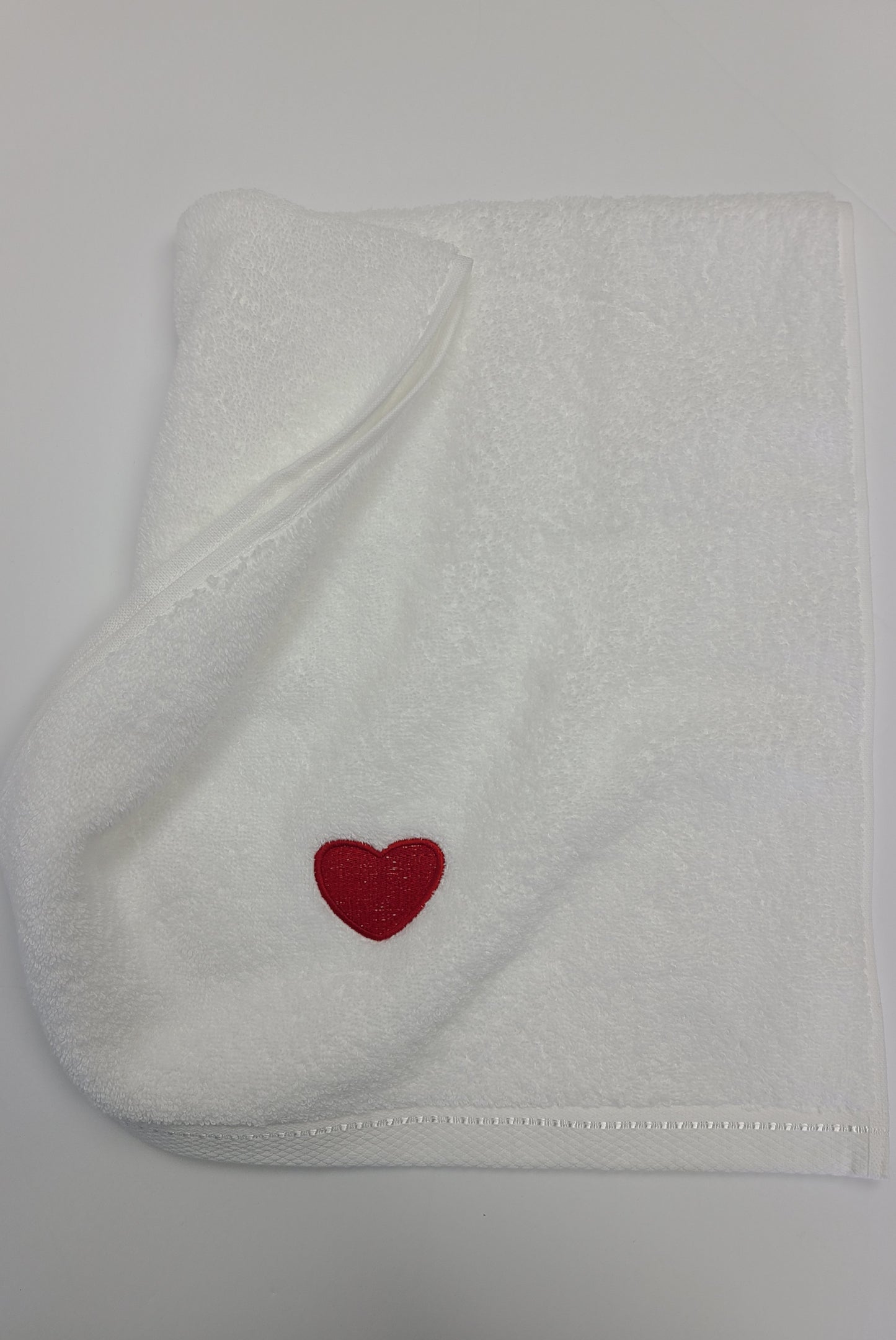 Red Heart Embroidered hand towel. A little heart is just what the doctor recommends.
