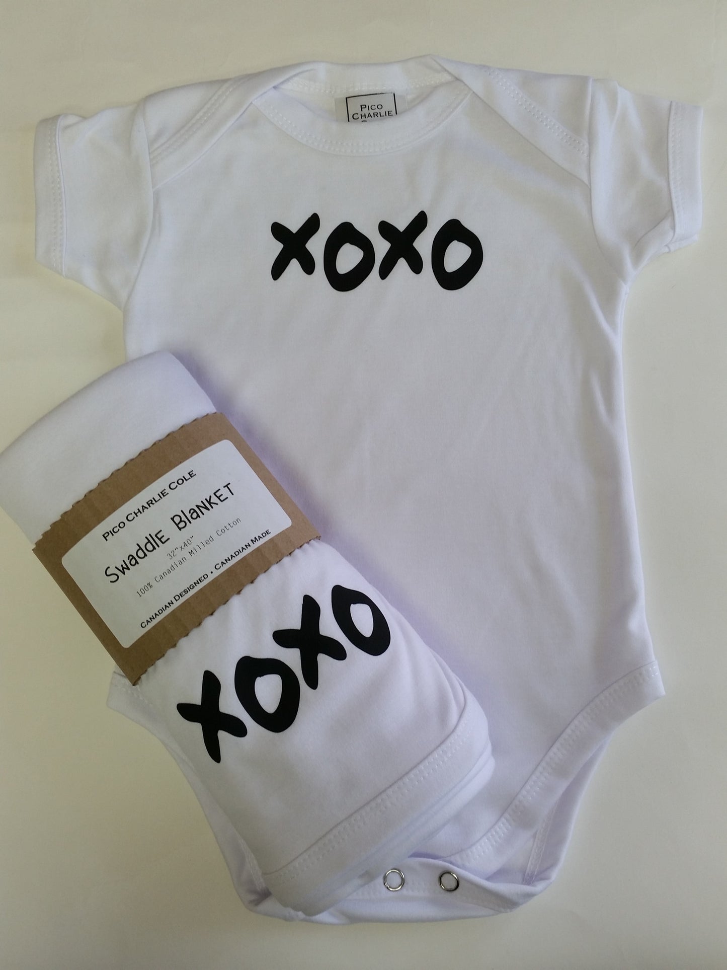 Swaddle blanket is a single layer cotton interlock with 5/8" binding.