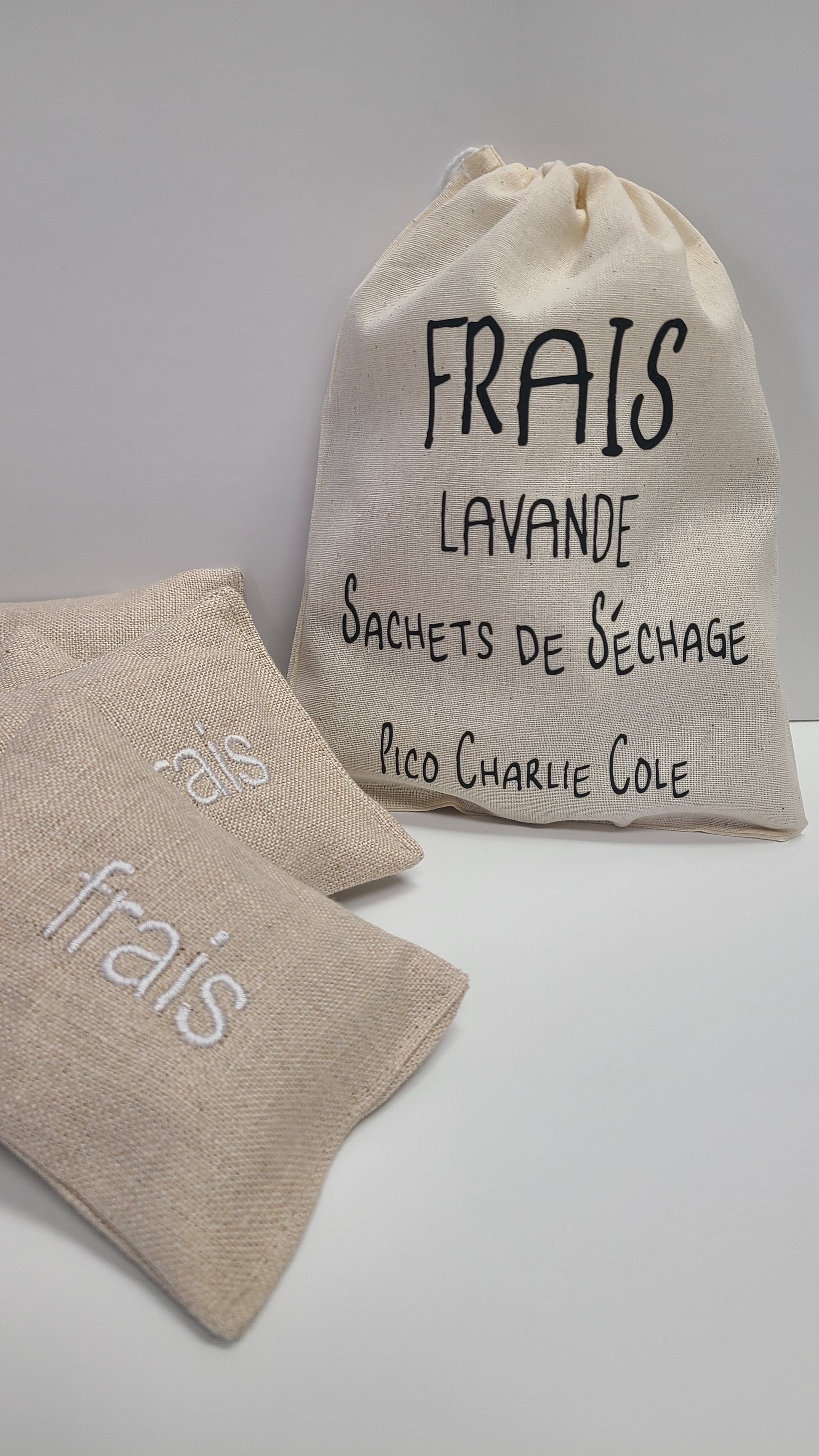 Muslin bag filled with 4 "Frais" lavender sachets.