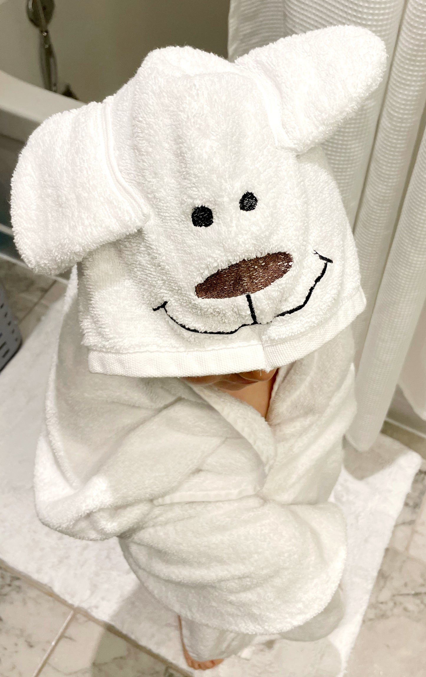 Get ready for some "beary" good bath time fun with our Bear Hooded Towel! This towel is not your average bath accessory - it's warm, cozy, and perfect for snuggling up in after a bath. Plus, the adorable bear hood adds a touch of cuteness to any bathroom routine. (Don't "bear" to be without it!)
