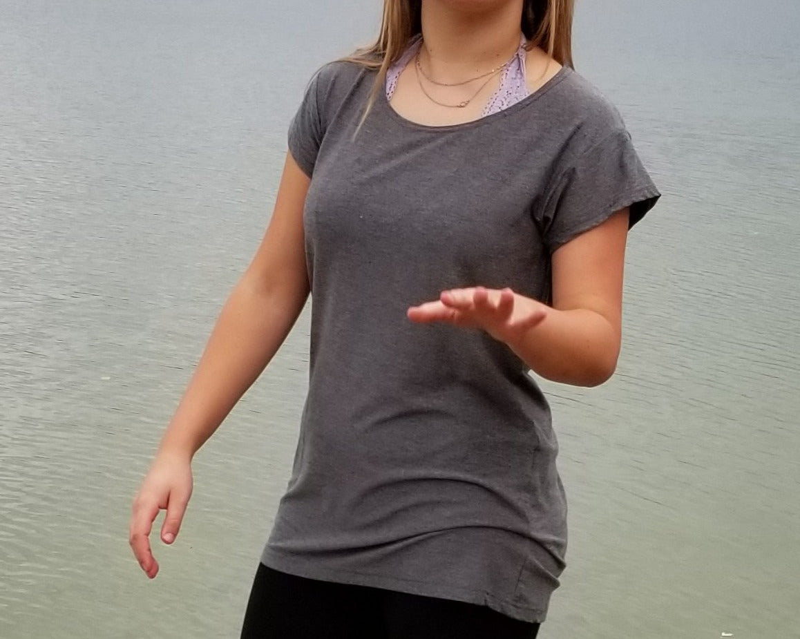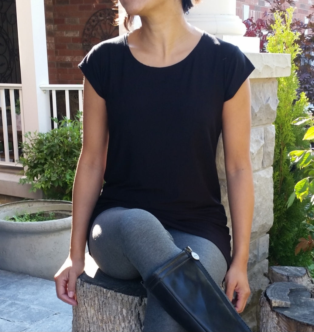 BF Bamboo tee. Double needle neckline. Below the hip length. A simple top that can go with anything. This as an essential piece to any wardrobe.