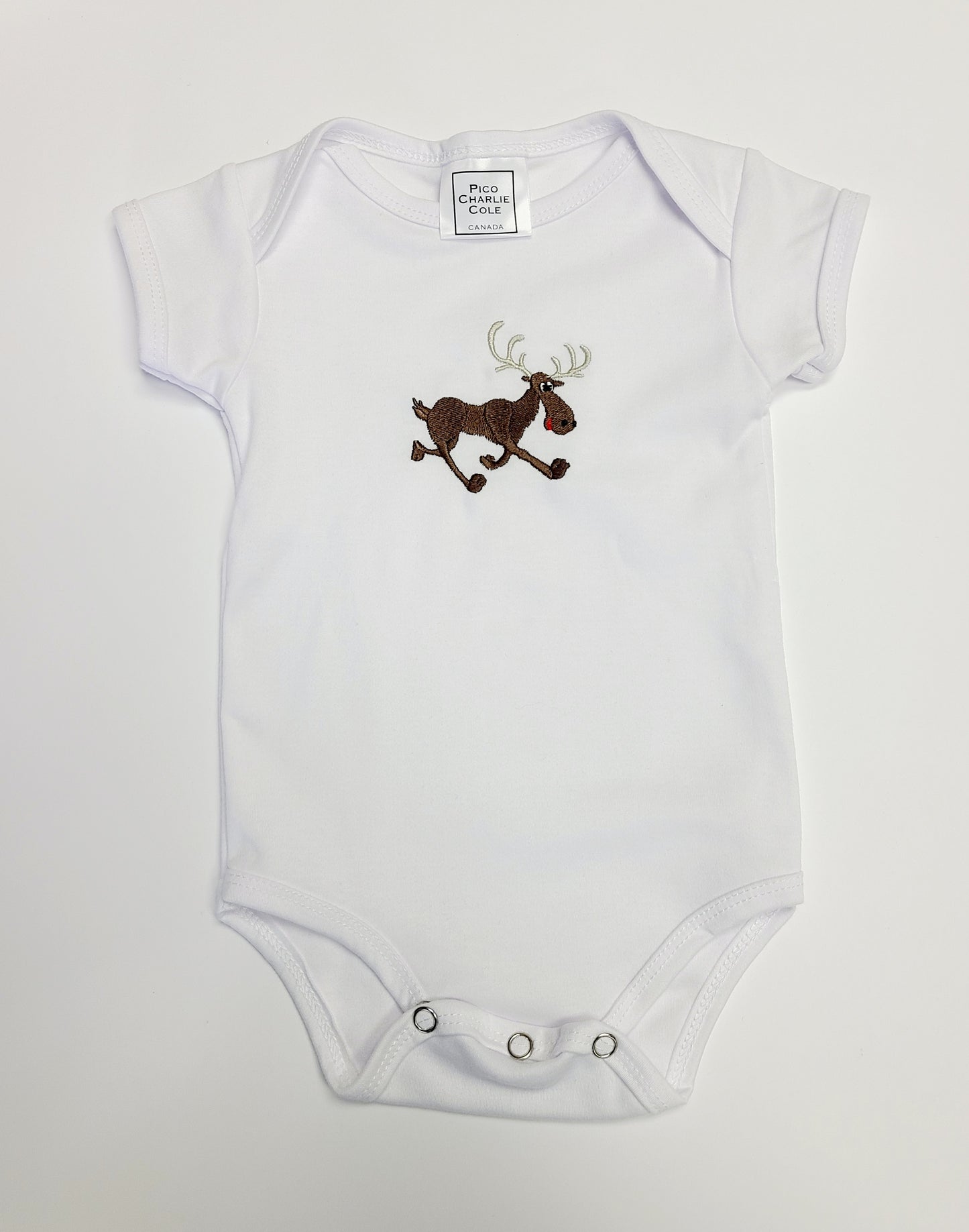 Embroidered wonky moose on the Softest cotton interlock fabric with 5/8" binding and 3 button snap.