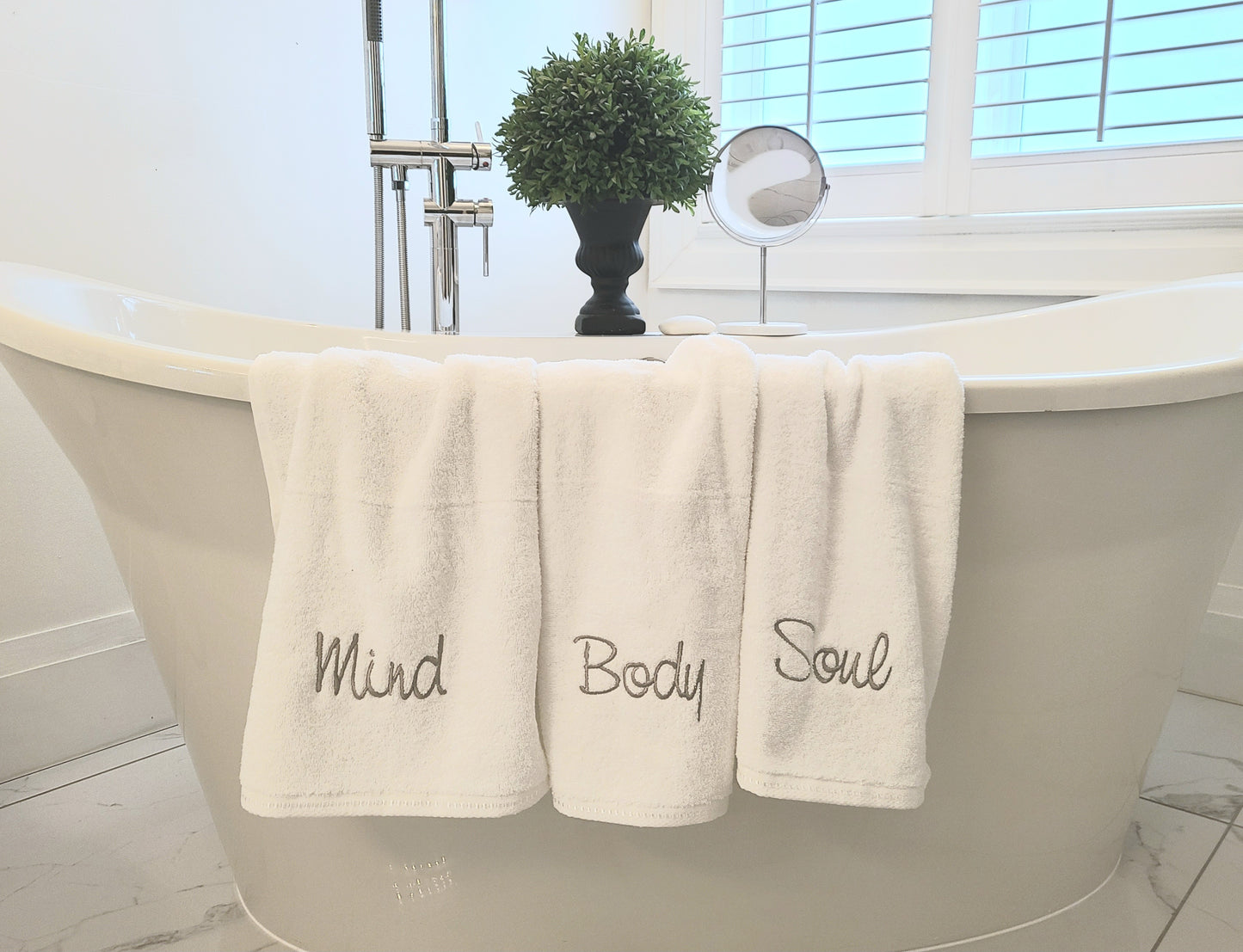 Mind Body Soul towel set . Three towels each measuring 16"x31".