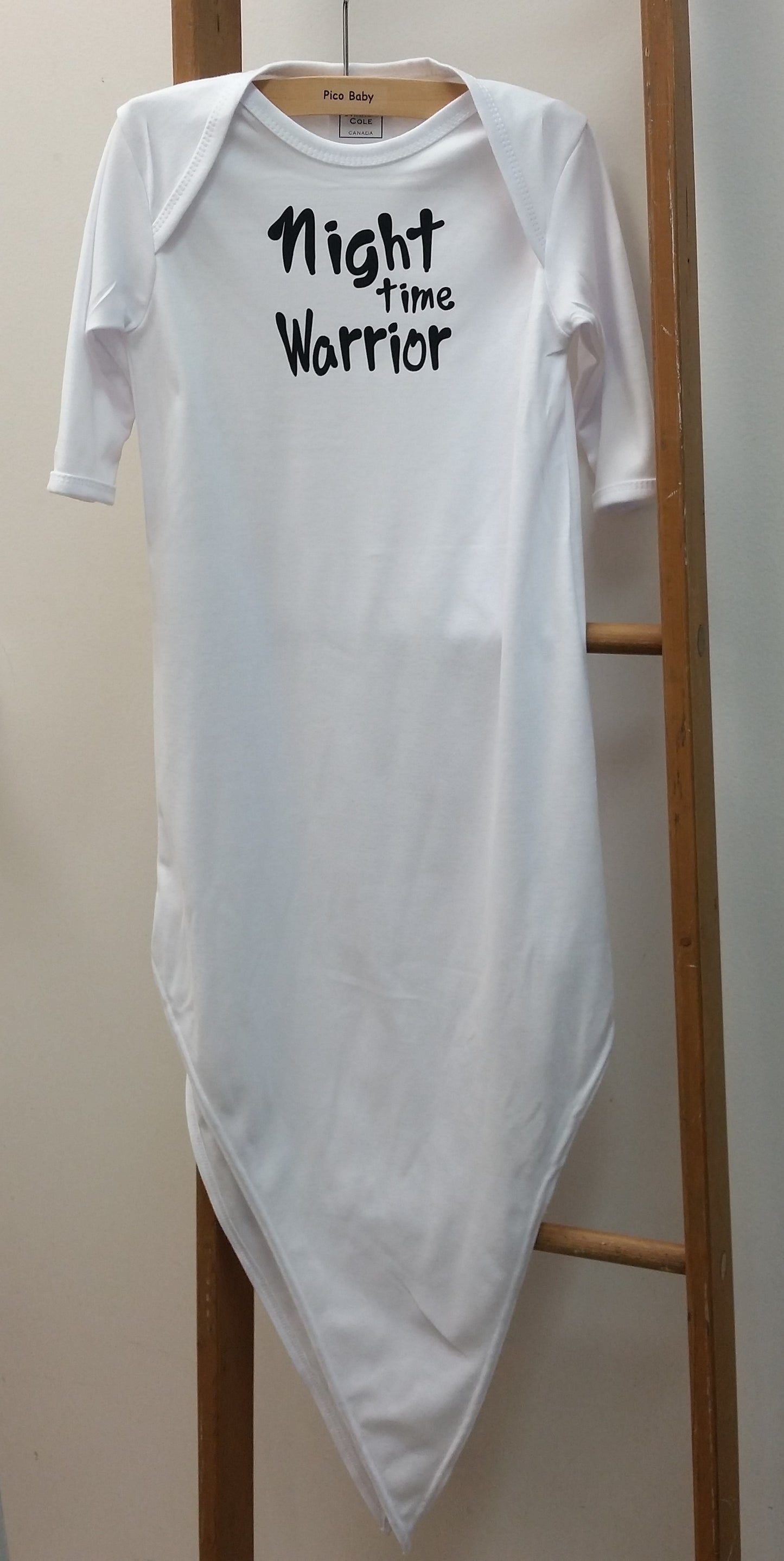 Softest cotton interlock fabric with 5/8" binding. Tie or knot the bottom to keep baby snug and warm. Easy access for changing.